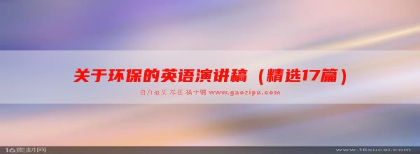 关于环保的英语演讲稿(精选17篇) 稿子汇 www.gaozihui.com